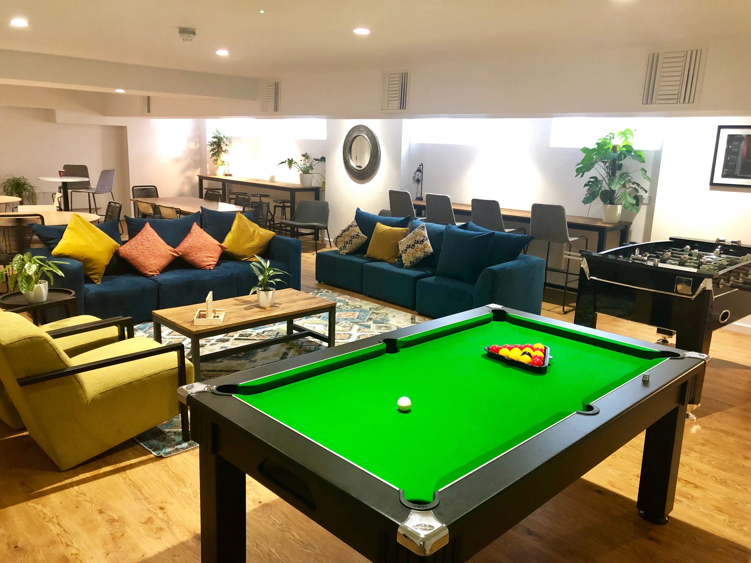 Play table football and hang out with other residents in the club lounge or head up to the roof top terrace to enjoy views of the surrounding countryside – what better place to retreat with a cold beverage on a hot summer’s day!